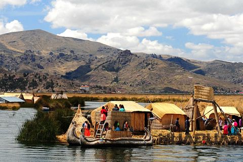 烏魯斯人是印第安阿依馬拉族的一支,早期為了躲避印加帝國等的侵擾而逃到湖中。他們擇“蘆”而居,吃蘆筍,用蘆葦造船,還用蘆葦根造出了巨大的浮島。在島上,烏魯斯人快樂地生活著,他們用蘆葦建房子,并制造出各式各樣的生活必需品。今天,仍有數百人居住在這些漂流島上。的一個漂流島上還建有學校、郵局和商店。