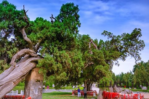整個(gè)陵廟占地四百畝,是景區(qū)的主要建筑,分南外城、陵園、皇城等三部分。陵廟神道兩旁存有古柏五株,樹齡均在4000年以上。華全發(fā)電機(jī)組在此告訴大家,甚為奇特的是,每一棵活柏的懷里竟都抱著一棵死柏,被稱為"夫妻柏"或"連理柏"。東邊的一株,其樹干形似龍爪,樹根形似龍椅。相傳,漢光武帝劉秀曾在此下休憩,故又稱“龍柏”。舜帝陵上也有一株古柏,樹形奇特,已有2000余年歷史。它的五個(gè)主枝形似虬龍,民間稱之為“五子登科”。在舜帝陵前有兩塊石碑,上碑刻:有虞帝舜陵,下碑則刻著“舜帝陵”。